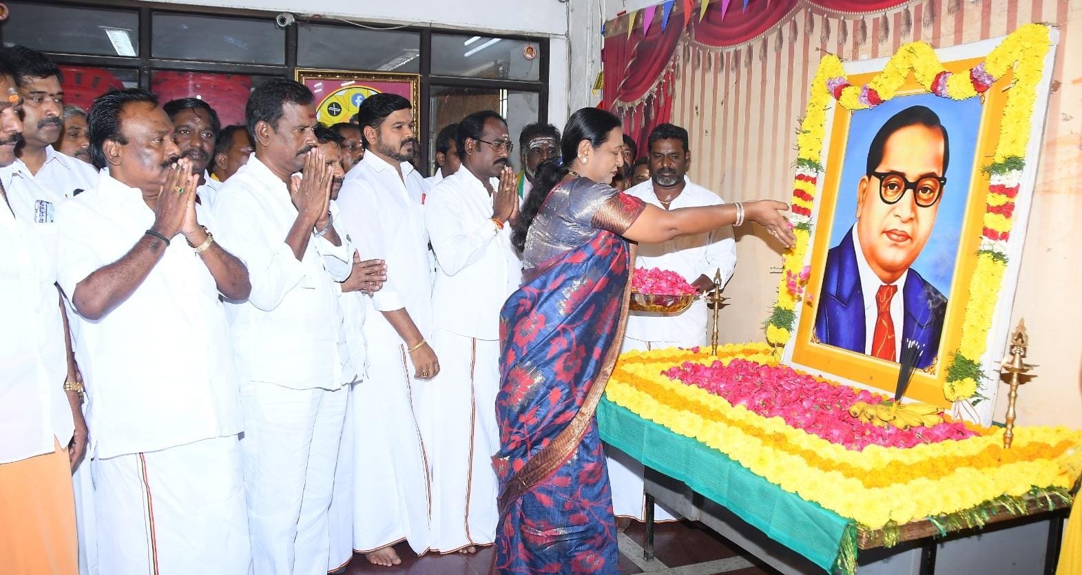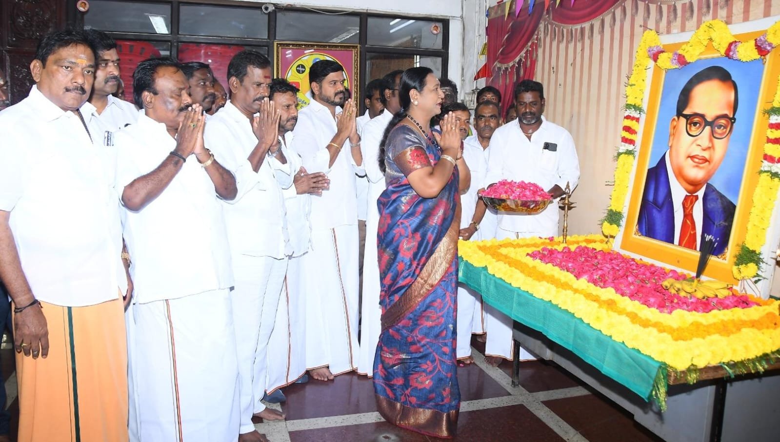 டாகடர் சட்ட மேதை அண்ணல் அம்பேத்கரின் அவர்களின் 69-ஆம் ஆண்டு *நினைவு நாளை முன்னிட்டு இன்று (06.12.2025) சென்னை கோயம்பேட்டில் உள்ள தேமுதிக தலைமை கழக அலுவலகத்தில் (கேப்டன் ஆலயம்) புரட்சி அண்ணியார் கழக பொதுச் செயலாளர் திருமதி.பிரேமலதா விஜயகாந்த் அவர்கள் அம்பேத்கரின் உருவப்படத்திற்கு மலர் தூவி மரியாதை செலுத்தினார்கள். மேலும் இந்த நிகழ்ச்சியில், தலைமை நிலையச் செயலாளர் திரு.ப.பாரத்தசாரதி,Ex:MLA., அவர்கள், கழக துணைச் செயலாளர்கள் திரு.M.R.பன்னீர்செல்வம் அவர்கள், திரு.SSS.U.சந்திரன் அவர்கள், உயர்மட்ட குழு உறுப்பினர்கள், கழக அணி நிர்வாகிகள், சென்னை மாவட்ட கழக செயலாளர்கள், மாவட்ட கழக நிர்வாகிகள், தொழிற்சங்க பேரவை நிர்வாகிகள், மகளிர் அணி நிர்வாகிகள், பகுதி கழக நிர்வாகிகள், வட்ட கழக நிர்வாகிகள் மற்றும் கழக தொண்டர்களும் கலந்து கொண்டு டாக்டர் அம்பேத்கர் அவர்களின் திருவுருவப் படத்திற்கு மலர் தூவி மரியாதை செலுத்தினார்கள்.