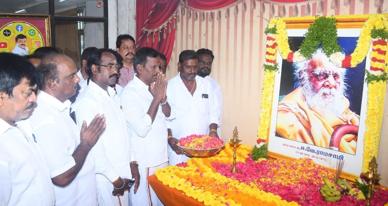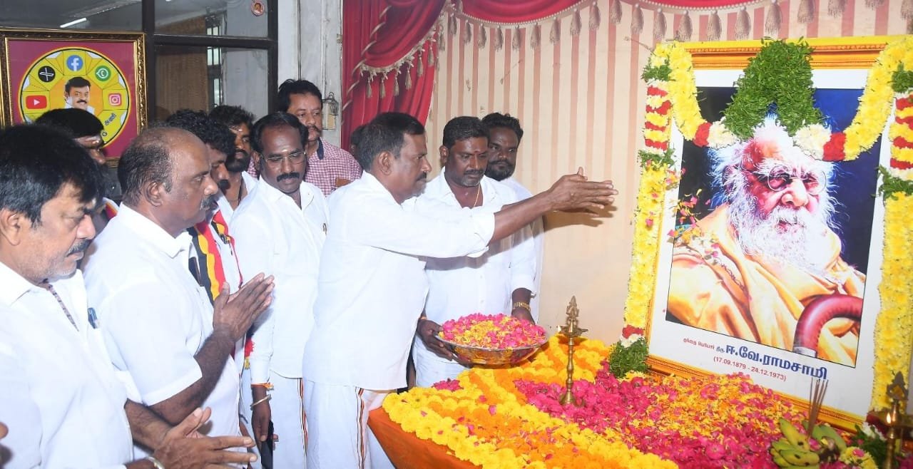 தந்தை பெரியார் அவர்களின் 147 வது பிறந்தநாளை முன்னிட்டு இன்று (17.09.2025) தேசிய முற்போக்கு திராவிட கழகத்தின் தலைமை நிலையச் செயலாளர் திரு.ப.பார்த்தசாரதி,Ex:MLA., அவர்கள் மலர்தூவி மரியாதை செய்தனார். இந்நிகழ்ச்சியில் கழக அணி நிர்வாகிகள், மாவட்ட கழக செயலாளர்கள், மாவட்ட கழக நிர்வாகிகள், மகளிர் அணி நிர்வாகிகள், சார்பு அணி நிர்வாகிகள் பகுதி கழக செயலாளர்கள், வட்ட கழக நிர்வாகிகள், தொழிற்சங்க நிர்வாகிகள், மற்றும் தொண்டர்கள் என அனைவரும் கலந்து கொண்டனர்.