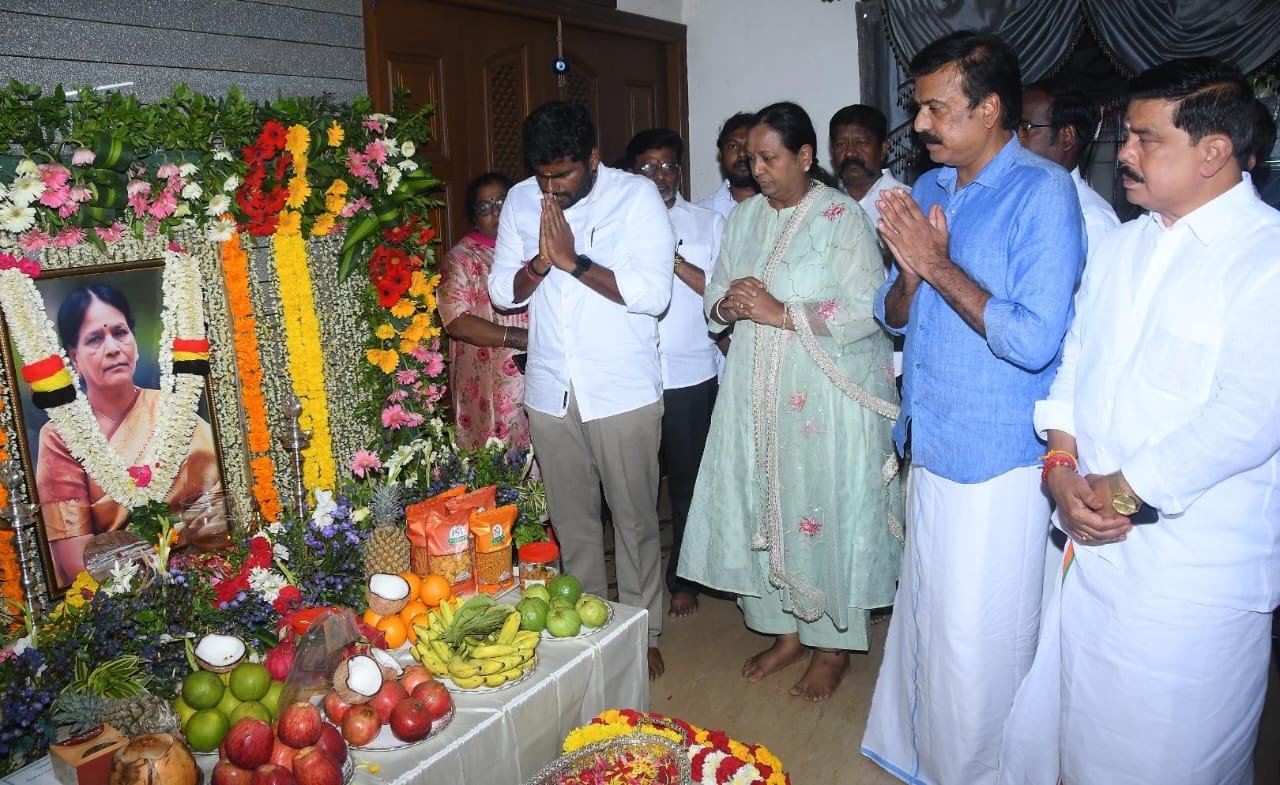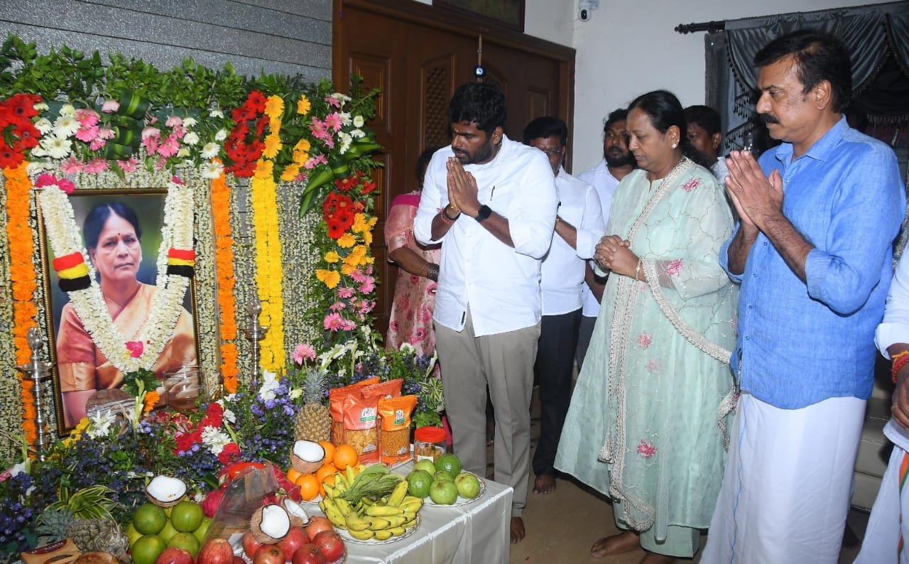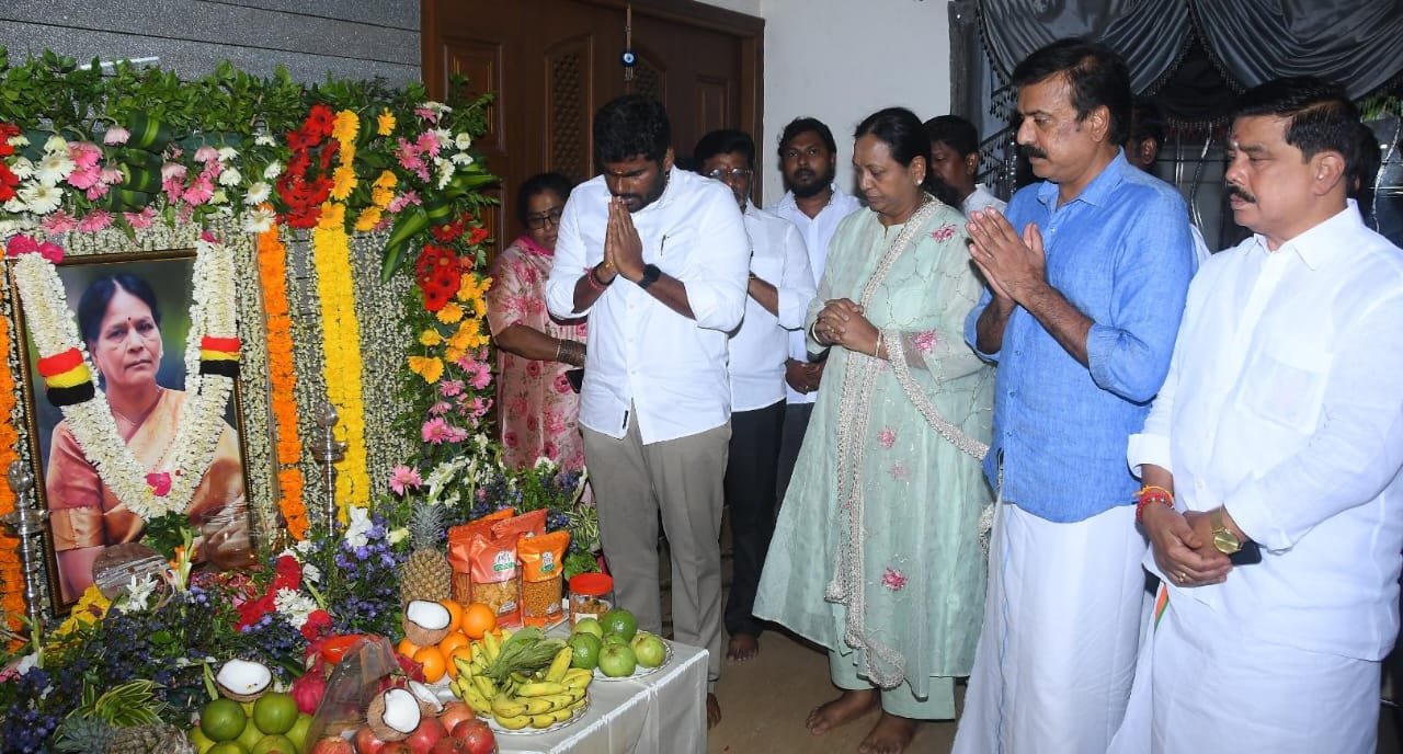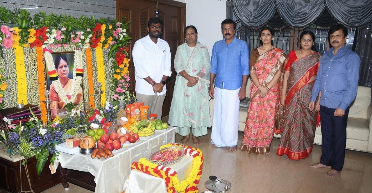 தேசிய முற்போக்கு திராவிட கழகத்தின் பொதுச்செயலாளர் திருமதி.பிரேமலதா விஜயகாந்த் மற்றும் கழகப் பொருளாளர் திரு.எல்.கே.சுதீஷ் அவர்களின் தாயார் திருமதி.K.அம்சவேணி கண்ணையா அவர்கள் திருவுருவப் படத்திற்கு இன்று (09.10.2025) முன்னாள் பாஜக தமிழ்நாடு மாநில தலைவர் திரு.K.அண்ணாமலை அவர்கள் நேரில் வந்து அஞ்சலி செலுத்தினார்.