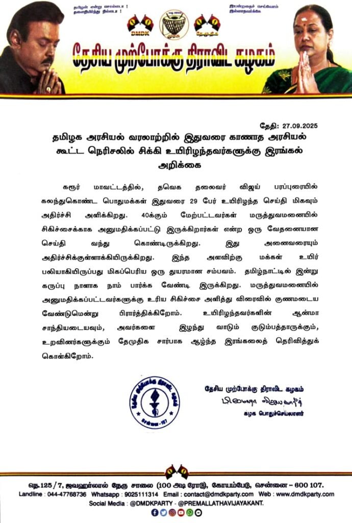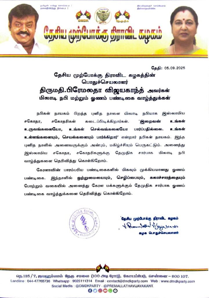 தேசிய முற்போக்கு திராவிட கழகத்தின் பொதுச்செயலாளர்திருமதி.பிரேமலதா விஜயகாந்த் மற்றும் கழகப் பொருளாளர் திரு.எல்.கே.சுதீஷ் அவர்களின் தாயார் திருமதி.K.அம்சவேணி கண்ணையா அவர்கள் மறைவிற்கு நேரிலும், தொலைபேசியிலும், சமூக வலைத்தளங்களின் மூலம் அஞ்சலிசெலுத்திய அனைவருக்கும் நன்றி