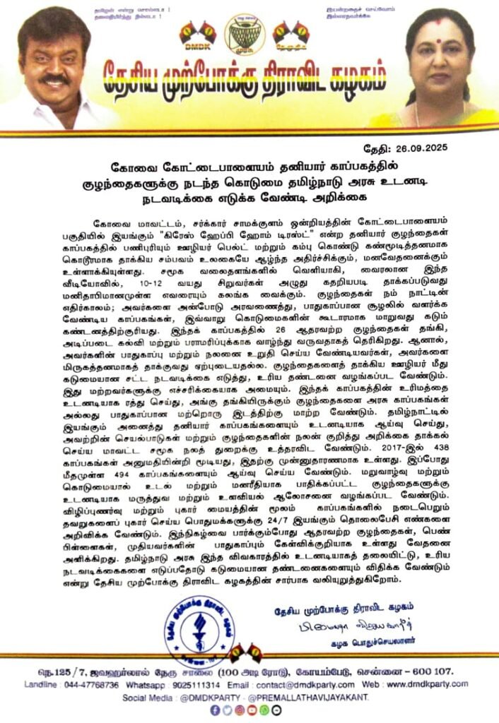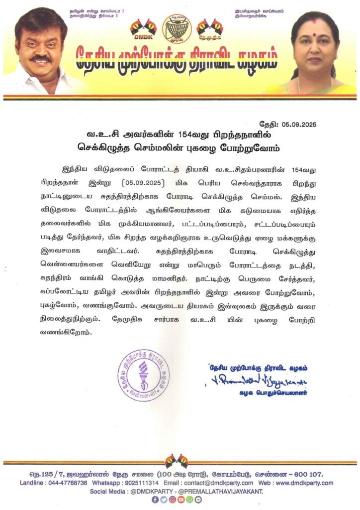தேசிய முற்போக்கு திராவிட கழகத்தின் பொதுச்செயலாளர் திருமதி.பிரேமலதா விஜயகாந்த் மற்றும் கழகப் பொருளாளர் திரு.எல்.கே.சுதீஷ் அவர்களின் தாயார் திருமதி.K.அம்சவேணி கண்ணையா அவர்கள் மறைவிற்கு தொலைப்பேசியில் அஞ்சலி செலுத்திய […]
